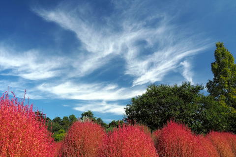 10月には緑と赤のグラデーションから鮮やかな紅葉そして赤と茶色のグラデーション、